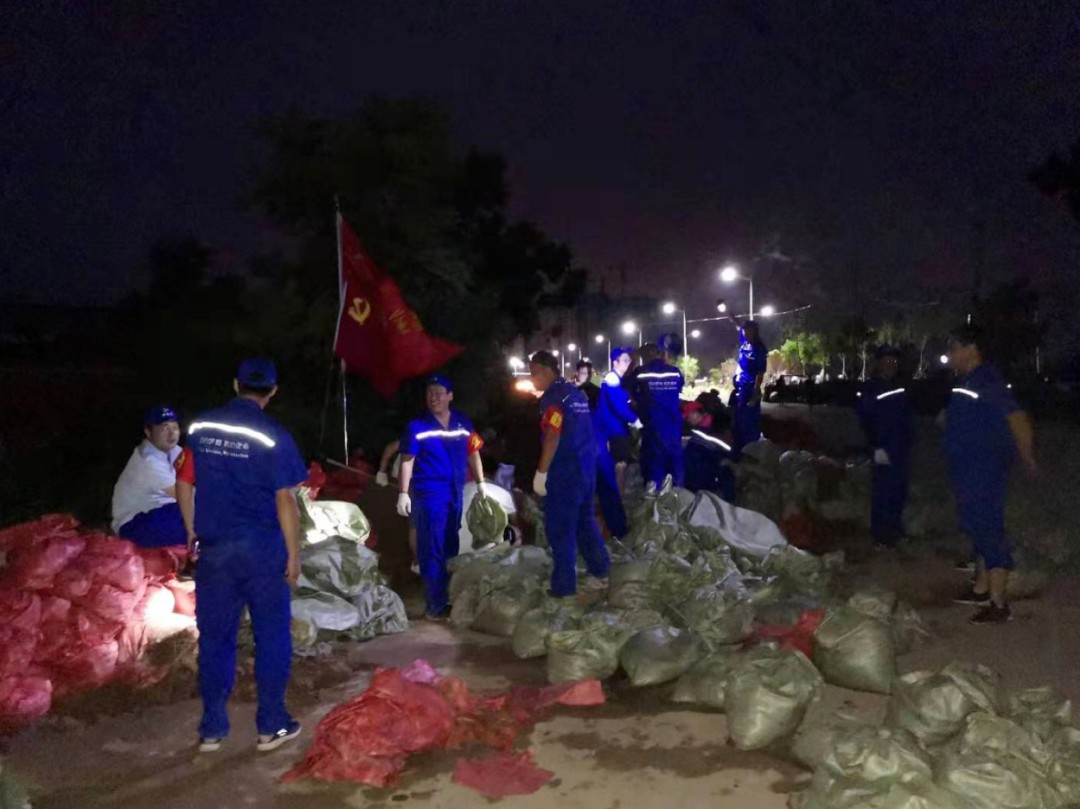 2021年7月28日下午2時,銀金達(dá)抗洪救災(zāi)志愿者奔赴七里鋪至衛(wèi)共橋筑壩現(xiàn)場,參加修筑攔洪堤壩,一直戰(zhàn)斗到深夜九時。